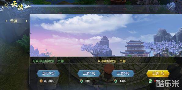 云游:一共三个功能,消耗金钱远行5次,消耗灵玉云游1次,消耗灵玉云游5次,消耗道具云游。