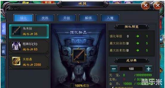 使用玄铁能够提升装备的星级,提升装备的属性,每件装备最高可以提升至+12。强化装备需要使用金币,强化星级越高,消耗的金币越多。强化成功率根据星级的提升而降低,玩家可以通过元宝来增加强化的成功率。装备+5之前,强化失败不降强化等级;+5之后强化失败将降低1个强化等级。