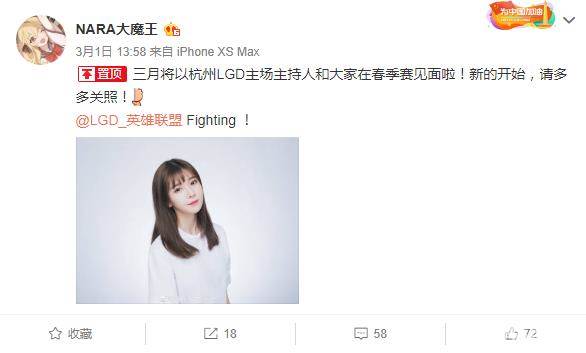 三月将以杭州LGD主场主持人和大家在春季赛见面啦!新的开始,请多多关照!