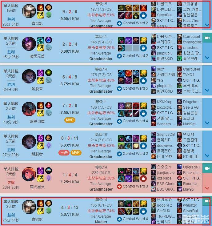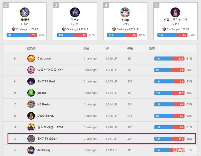 凡是能在高手如云的韩服冲上1000分以上的,至少是个人能力非常突出的选手,此人还不是那种只打维护局的选手,而是天天高强度排位。这个ID为GGori的中单能被SKT看重,自然有人家的道理。他的英雄池和faker也有相似的地方,都是加里奥、妖姬和冰女玩的非常好,胜率很不错。看来作为Faker的队内接班人,英雄池是要提前练的。