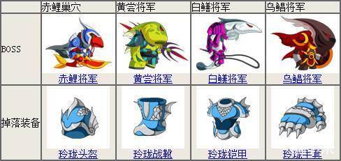 4、四个副本的居住BOSS于其具体掉落的宠物装备如下: