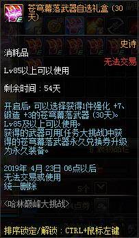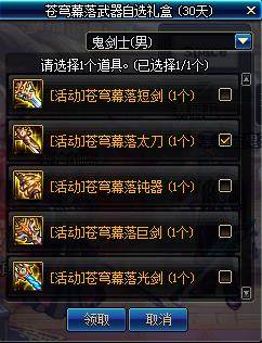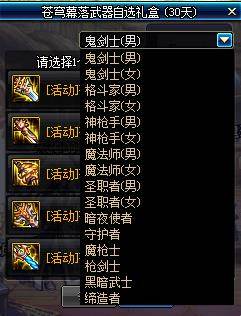 创建角色即送苍穹武器自选礼盒(30天),仅限一个角色。