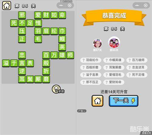 《成语升官记》秀才第86关的成语都是大家比较熟知的,所以通过还是比较容易的,下面是小编为大家带来的《成语升官记》秀才第86关答案!
