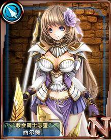 苍之骑士团教会骑士志望西尔薇属性,向往成为教会骑士的少女。虽然拥有高强的实力,但不知道为什么在教会骑士团的入团考试中不断落选。稍微有一点天然呆,也因为如此将主角的骑士团误认为教会骑士团而入团。穿着相当暴露的铠甲,但本人似乎没有自觉。