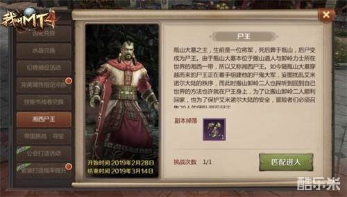 在各位冒险家的通力合作之下,鼠王、六翅蜈蚣、白猿、尸桂等强力BOSS皆已被逐个击破,《我叫MT4》与网剧《怒晴湘西》的联动合作终于进入了尾声——2月28日至3月14日,剧集中的最终BOSS湘西尸王会在艾米诺尔大陆,等待冒险家们组成20人团队前来挑战!作为本次联动主题活动的终极BOSS,尸王不仅有着超强的个人实力,还坐拥骇人的尸鬼大军,想要过关的玩家可得好好做好准备哟。当然,成功通关活动副本必将获得丰厚的游戏道具奖励!来个MT,今晚就开团!