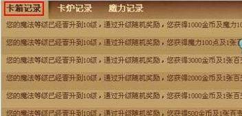 魔法卡片升级时,会有图片提示,以及获赠的奖励记录会显示在魔法卡片的卡箱记录中,如下图: