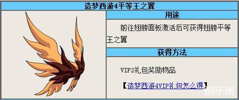 造梦西游4平等王之翼可以通过使用VIP2礼包获得。获得平等王之翼后可以在翅膀界面激活平等王翅膀。