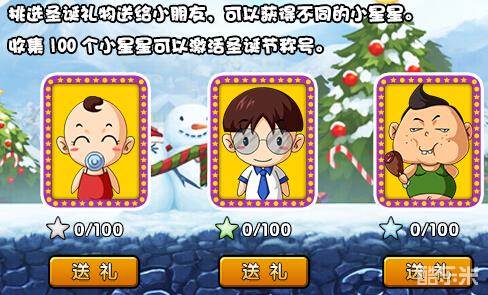 从圣诞老公公那获得的道具,不同的道具给不同的小朋友,得到的星星都是不一样的。大家不要乱给东西,能拿5星的道具结果只获得了1星,这样得圣诞节称号的进度就太慢了。