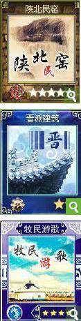 也就是说不计抽卡的重复性目前要练2套陕北民窑和2套晋派建筑和2套牧民游歌或4套陕北民窑或8套晋派建筑或4套牧民游歌(只练陕北民窑或晋派建筑或牧民游歌的话可以通过和卡友换卡的方式获得另一主题的民居卡)。
