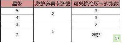 对应套卡星级和道具卡奖励关系见下图: