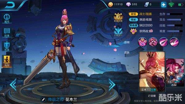 花木兰走上单对线,四级前的花木兰清兵线的能力较弱,需要在塔内猥琐发育,四级后使用大招加一技能可以迅速清掉兵线,守住防御塔。后期团战中,花木兰作为一名刺客兼战士,千万不要第一个动手冲锋,一般选择跟随己方坦克或者在团战开始后进行切入,可以选择突进到敌人较为密集的敌方,顺势开启大招,造成大量伤害,再通过二技能限制敌方,最后通过一技能完成击杀。