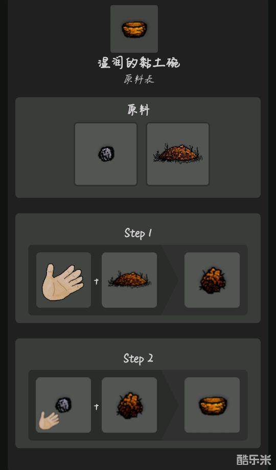 (也就相当于用石头划一下陶土是湿陶碗,用石头划两下是湿陶盘,另外这里还是湿的,不能装水,一次至少要三个湿陶碗两个湿陶盘,这些也是后期炼铁和做派必备,条件可以的话,可以制作多一些)