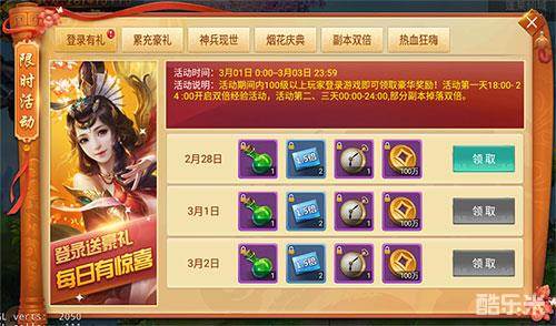 活动说明:活动期间内,第一天经验翻倍,第二、三天特定副本双倍掉落,道具奖励超爽翻倍!