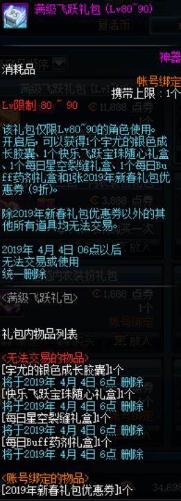 DNF满级飞跃礼包价格和DNF满级飞跃礼包多少钱如上所述,目前还在测试服,一切以正式服为准,该礼包预计会在3月7日上架正式服,届时玩家即可通过游戏商城购买。