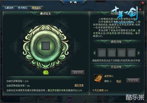 “通 灵宝玉”算是武魂系统中一个额外的附加功能,它能够帮助你赚取额外的经验值。这些经验是在你日常任务、打怪、副本等等获得经验的同时,依靠“灵石”额外吸 取的一部分,储存了经验的灵石可提取为灵珠,开启灵珠后即可获取内含的经验值。其中最重要的物品“灵石”只有副本中才能掉落,所以是非常宝贵的哦!