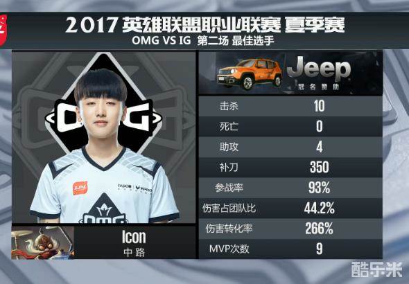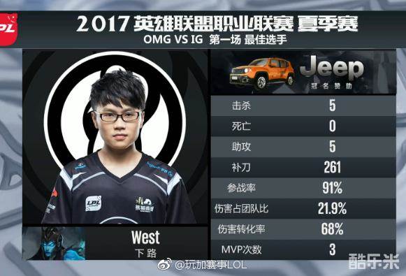 最终,随着OMG防守IG上路的推进,被大虫子和酒桶绕后开起团战,卢锡安持续追击输出完成四杀后,IG推掉OMG基地,首局先下一城!