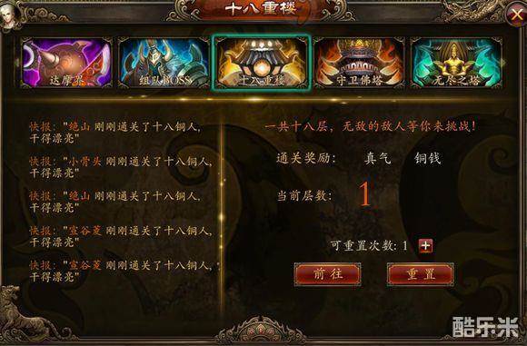 每通关一层就会获得不少铜钱奖励,如果能够登顶十八重楼,不仅在实力上会得到所有玩家的认可,还会得到一笔非常可观的财宝。
