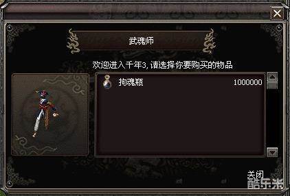 3.包裹中备有“拘魂瓶”(在NPC武魂师处花100W绑定钱币购买)一个
