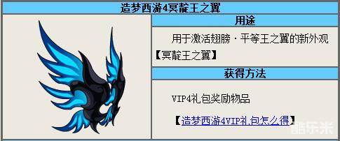 造梦西游4冥靛王之翼可以通过使用VIP2礼包获得。获得冥靛王之翼后可以在翅膀界面激活冥靛王翅膀。