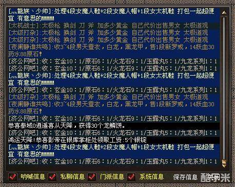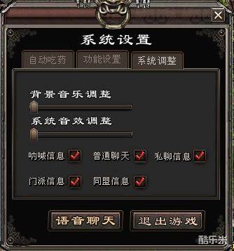 在该界面中您可以选择接受呐喊信息、门派信息、同盟信息、聊天信息,或是屏蔽这些信息。