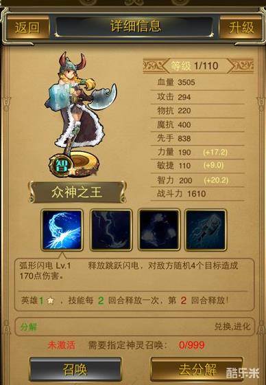 弧形闪电属性:释放跳跃闪电,对敌方随机4个目标造成170点伤害。
