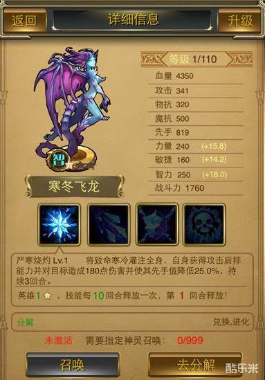 刀塔女神寒冬飞龙是智力英雄,初级附带技能是严寒烧灼。刀塔女神寒冬飞龙初始技能严寒烧灼属性是将致命寒冷灌注全身,自身获得攻击后排能力并对目标造成180点伤害并使其先手值降低25.0%,持续3回合。
