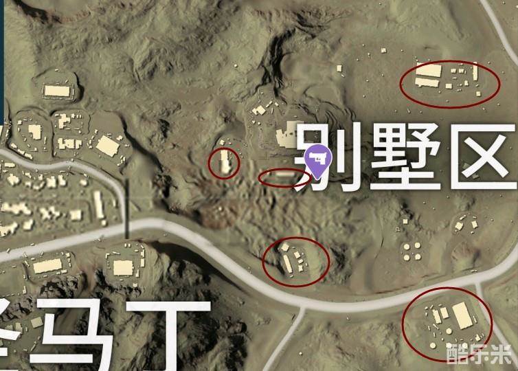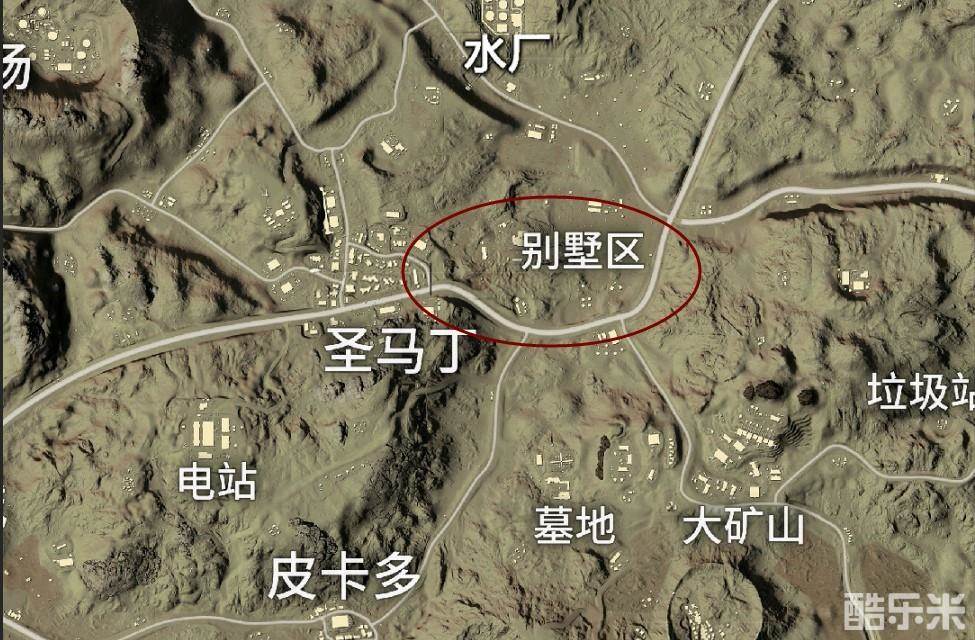 “别墅区”位于沙漠图的中部区域,大多数情况下可以位于第一波安全区内。如此一来,玩家就可以免去前期“跑毒”的压力。其次,别墅区与圣马丁、水厂、皮卡多和墓地等众多资源点临近,基本上玩家选择这里作为降落点位,前期要面对同样跳这里的玩家的威胁,后期还要面对从别的资源点,尤其是圣马丁转移过来的敌人。可以说,选择别墅区降落的玩家基本上是没有时间安稳收集物资的,迎接你的只有不断的刚枪,是名副其实的刚枪圣地。