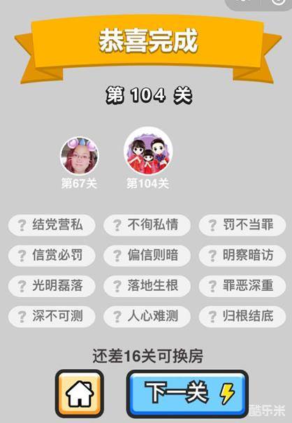 《成语升官记》举人第104关是对大家成语词汇量的一大考验,有些成语是大家不常用的,那么这一关到底涉及哪些成语呢?下面就跟着小编一起了解一下吧!