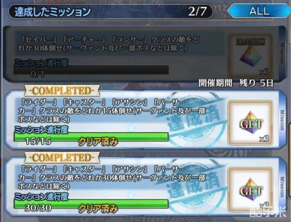 奖励圣晶片×3 任意打倒30名『骑』『术』『杀』『狂』阶的敌人(从者及一部分Boss除外)
