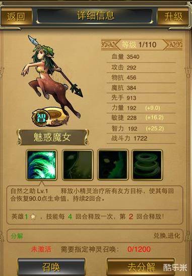 刀塔女神魅惑魔女是智力英雄,初级附带技能是自然之助。刀塔女神魅惑魔女初始技能自然之助属性是释放小精灵治疗所有友方目标,使其每回合恢复90.0点生命值,持续2回合。