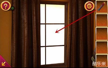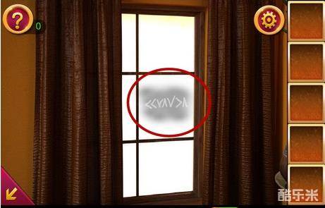 5、然后点击房间左边的窗帘,用蜡烛把窗户上隐藏的密码显现出来,记住密码。