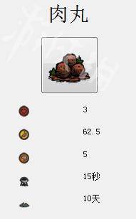 肉丸可是平民食品中王道级别的存在。可以恢复3点生命,62左右的饱食度,以及5点理智。