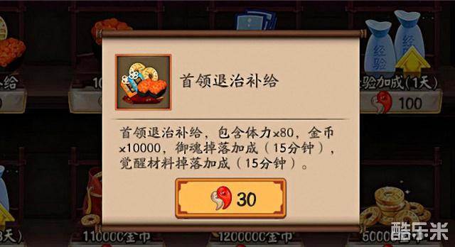 说到BUG一般的礼包不得不提的就是上次超鬼王活动出来的首领退治补礼包,当时的礼包是花30勾玉就可以获得80体力一万金币和御魂觉醒buff时间,并且没有购买上限。阴阳师这个游戏后期最终是看什么,毫无疑问还是看体力,有了式神完全不够,你得花体力去刷狗粮6式神,得刷无数次的御魂去得极品御魂给式神装备,这些事情的基础还是大量的体力支持,不然稍微肝一点多刷几次御魂,体力就告急了。
