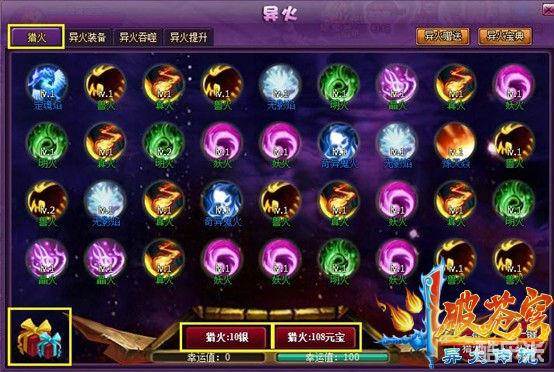 但是从目标中获得异火,都只是一锤子的买卖,想要获得更多的异火,还是需要通过猎火。猎火可以用2种货币来进行支付,虽然对于非R的玩家来说,即使元宝猎火更容易获得高品质异火,但是也很难下狠心点下去。不过我个人倒是觉得,即使是非R的玩家,每天也一定要花费1元宝,进行第一次的元宝猎火,这可是超值的哦!随着猎火次数的增加,每次猎火的费用会增加,但是幸运值也会增加!也就是说猎火越到后面,费用越高,但是猎到珍惜异火的几率也会越高!不过各位玩家可一定要量力而行哦!