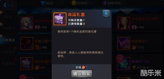 命运礼盒每个都能够开出一个强化锤,但是品质是随机的。对于装备强化等级比较高的玩家来说,强化锤的重要性还是比较大的,毕竟后期的强化石消耗太大,完全不够用。