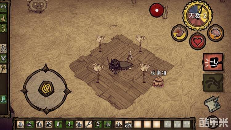 开局的地图调整:为了不破坏平衡,不建议将蜘蛛巢调多,因为楼主调多一次。。。结果猪窝都被蜘蛛窝包围了,满地图的蜘蛛,中期到后期就满地图的蜘蛛女王,虽然蜘蛛女王不会主动攻击。。。但是女王仇恨极高,能追你半块图,普通的蜘蛛对韦博的仇恨值较低,攻击蜘蛛以后围着火堆跑两圈就没事了。