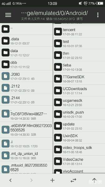 左边打开之后出现obb点进去,右边如果你在qq群里下的文件都会在里面就是那个Tencent那个文件点进去(这个文件夹是你下载的mod的储存的位置,没有mod自己搜q群关于mod的一大堆自己找。)