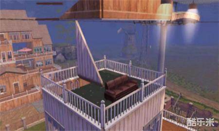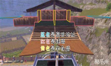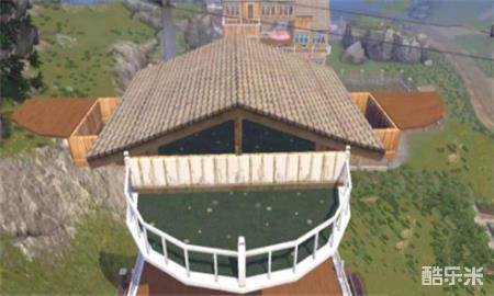 在邮轮主体最高层放置一块1型屋顶作“停机坪”,在上方放置扇形地板以及地板并在地板上方搭建矮楼梯追求美观的话使用3型屋顶填补楼梯两侧