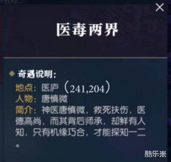 这是一个关于神医的奇遇,治疗职业触发这个奇遇的概率更高哦。