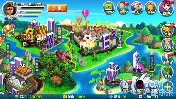 《欢乐足球》中的副本是玩家在初次登陆游戏时最早接触到的游戏玩点。游戏中的副本通过极富世界各地特色的建筑物展现至玩家面前,并且每个副本都对应的当地的足球联赛。玩家在选择相应的关卡后,点击“战”即可进行比赛闯关;每次发起闯关比赛,无论胜负,均会消耗1点体力值;每个小关卡每天都会有一定的挑战次数,每次挑战胜利后,次数减少1次,但可以使用金币进行“次数”恢复。