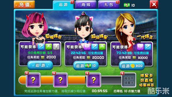 超级球星:每24小时可免费巡游1次,有机率巡游到甲、乙、丙品质球员;