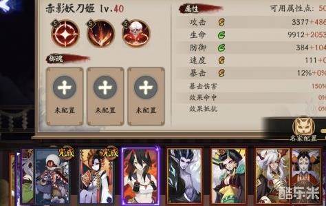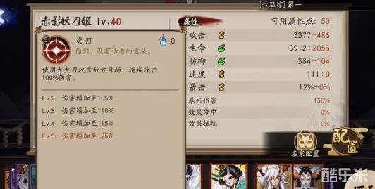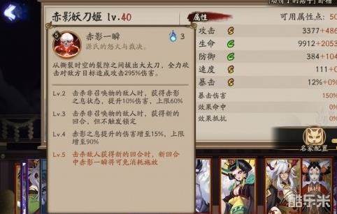 赤影妖刀姬属性:攻击S 生命C 防御C 速度S 暴击S