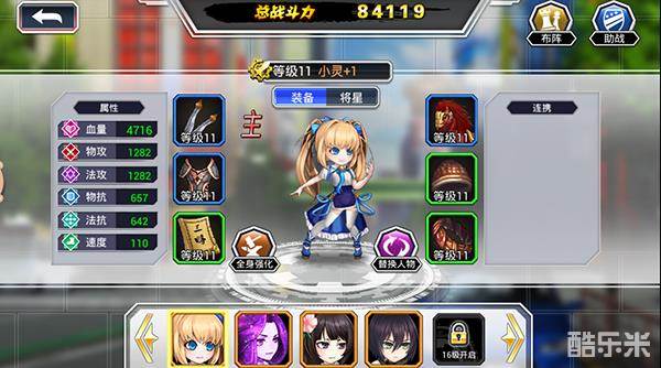 点击游戏主界面右下方的“阵容”图标即可进入《器灵》阵容系统。阵容系统中,除了展示玩家当前的总战斗力数值,还展现了玩家当前所携带的英雄、装备、属性等信息。在这里,可以直接对英雄进行装备强化,替换等操作哦~!