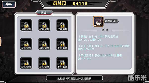 大家可能还会注意到,布阵玩法主界面的右上角有个“助战”按钮。是的,看来大家的眼神都挺尖的!助战系统会在玩家等级达到25级时解锁,解锁后,玩家可以在解锁的阵位中设置新的英雄。助战阵容中的英雄除了能给玩家带来属性加成,还能协助战斗阵容中的英雄解锁连携关系哦~!