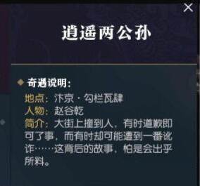 逆水寒中有很多的奇遇,种类也不太一样,可以说是丰富多彩了,这些奇遇触发也是需要一定条件的哦,那么该怎么触发逍遥两公孙呢?下面就跟小编来看一下吧~