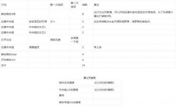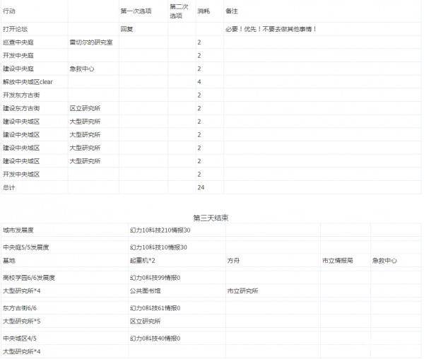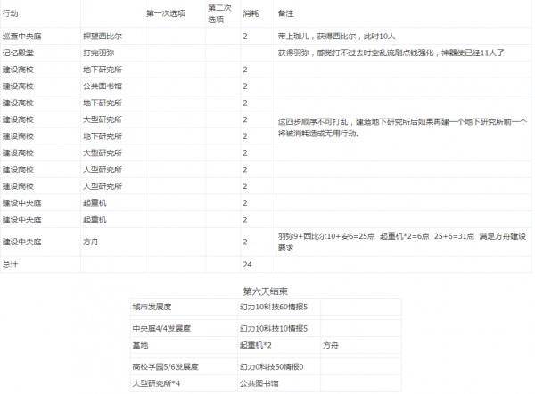 ⑦建设建设中央庭,建立情报局,消耗2点行动力。