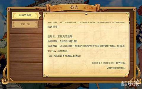 航海王燃烧意志女神节活动一览 许愿瓶推出上线