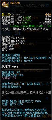 太刀,疾风劫,1~85级的技能全部加1,并且提供高额的三速加成,不论是连招还是刷图都非常的流畅,个人感觉太刀这种武器,几乎所有的鬼剑士都适合使用,毕竟玩游戏手感才是最重要的嘛,哈哈哈哈。