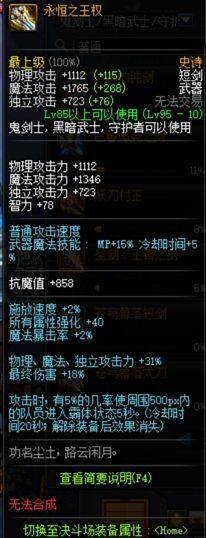首先是光剑末日预言,鬼剑士中能使用光剑的并不多,只有剑魂,剑豪和黑暗武士,这把光剑赋予了34点的所有属性强化,并且有火属性和暗属性攻击的特点,技能攻击力增加22%,并且有30%的白字,并能令敌人陷入异常状态,剑魂使用这把武器中规中矩,而其他两个职业都不太推荐。
