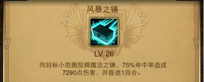 风暴之锤这个技能呢,控制时间1回合不长,但是在某些情况有奇效。在第二回合先手高于对面情况下算的上是一个打断技能,竖排释放可以打断躲在后面全能、虚空,为接下来输出争取一回合输出时间。